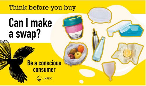 Learn more and stay in touch with the campaign on the NPDC website at Waste minimisation out and about (npdc.govt.nz)